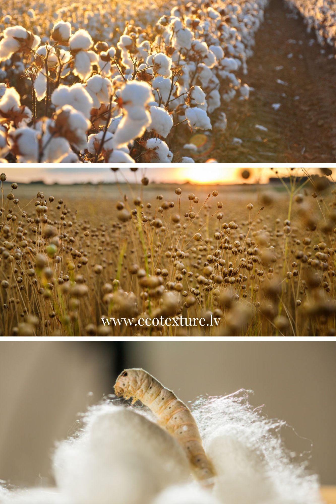 - Zīds- Zīds – iegūst no zīdtauriņu kāpura kūniņu izdalījumu savērptiem diegiem. Zīda iegūšanas tehnoloģiju izgudroja Senajā Ķīnā pirms 3000. gada p. m. ē. Senajos laikos tā bija viena no vērtīgākajām precēm, kura tika transportēta pa Zīda ceļu. Eco Texture adītajos izstrādājumos zīds ir viena no sastāvdaļām. (vismaz 40%) Zīds adījumam piešķir pārsteidzošs maigumu, ko var sajut uzreiz!